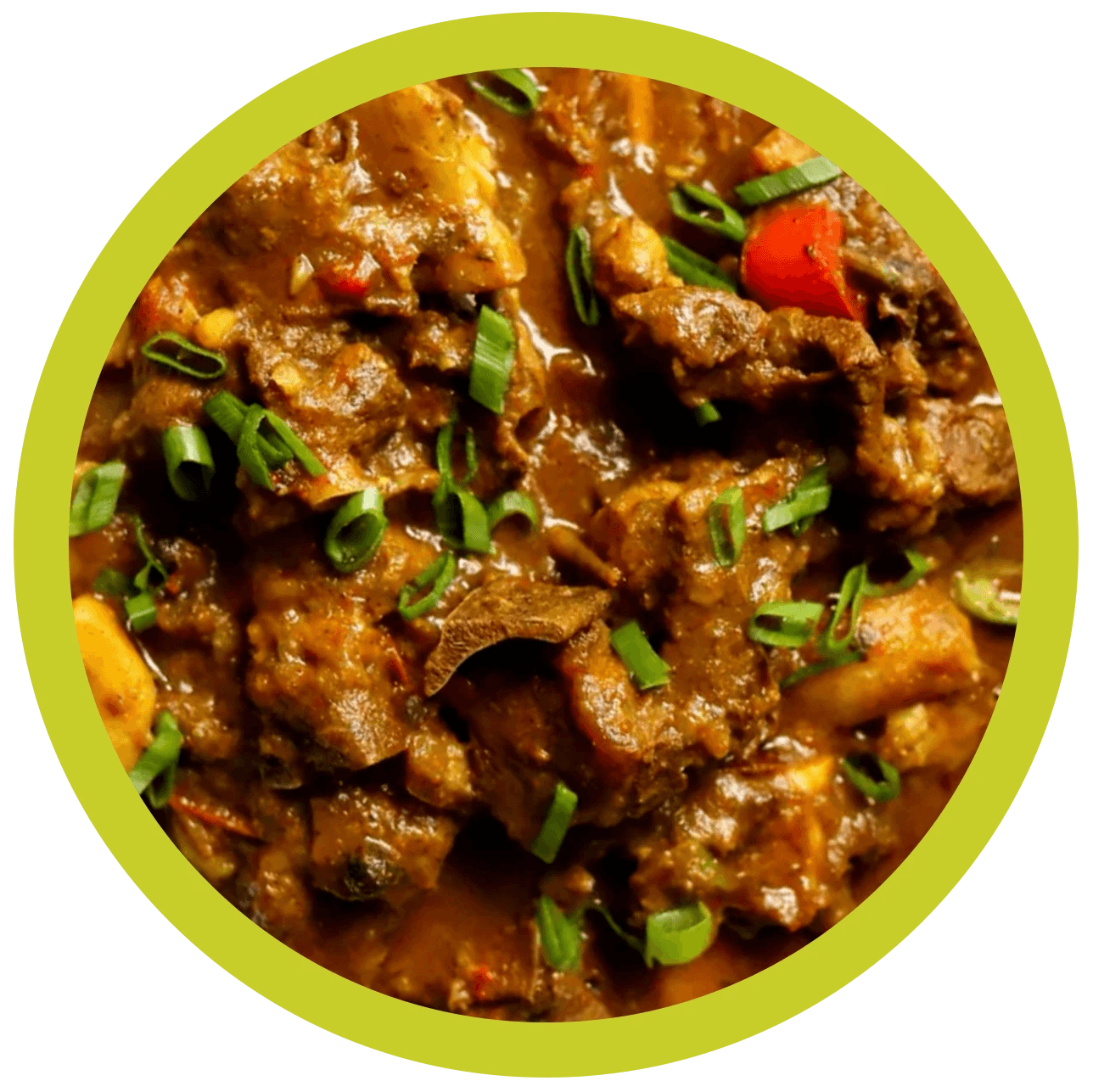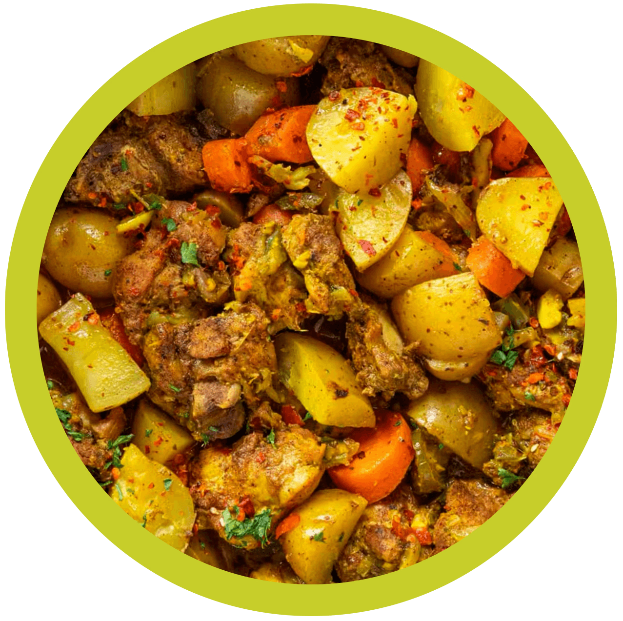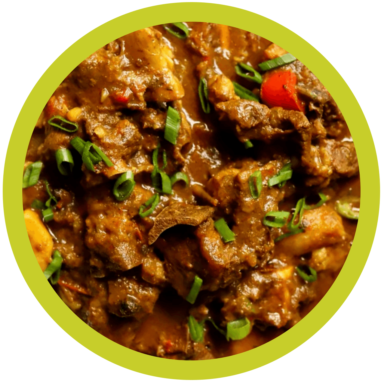 low-simmered goat in a bold Jamaican curry with potatoes and warming spices. Served with rice and steamed cabbage.